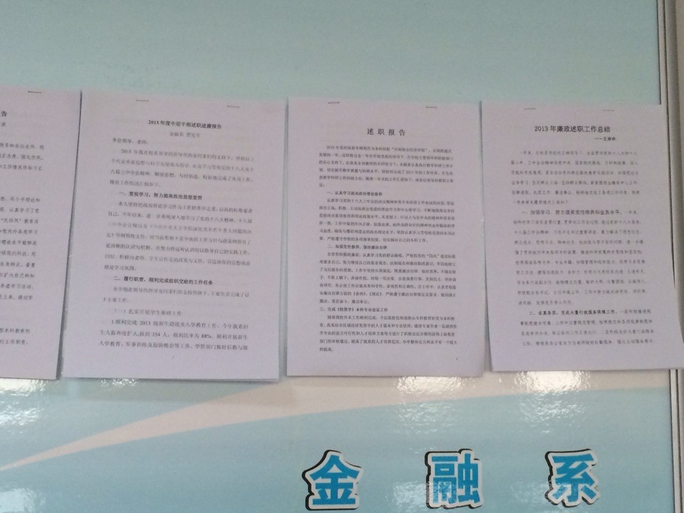 金融系2013年度述廉述职报告及考核公示
