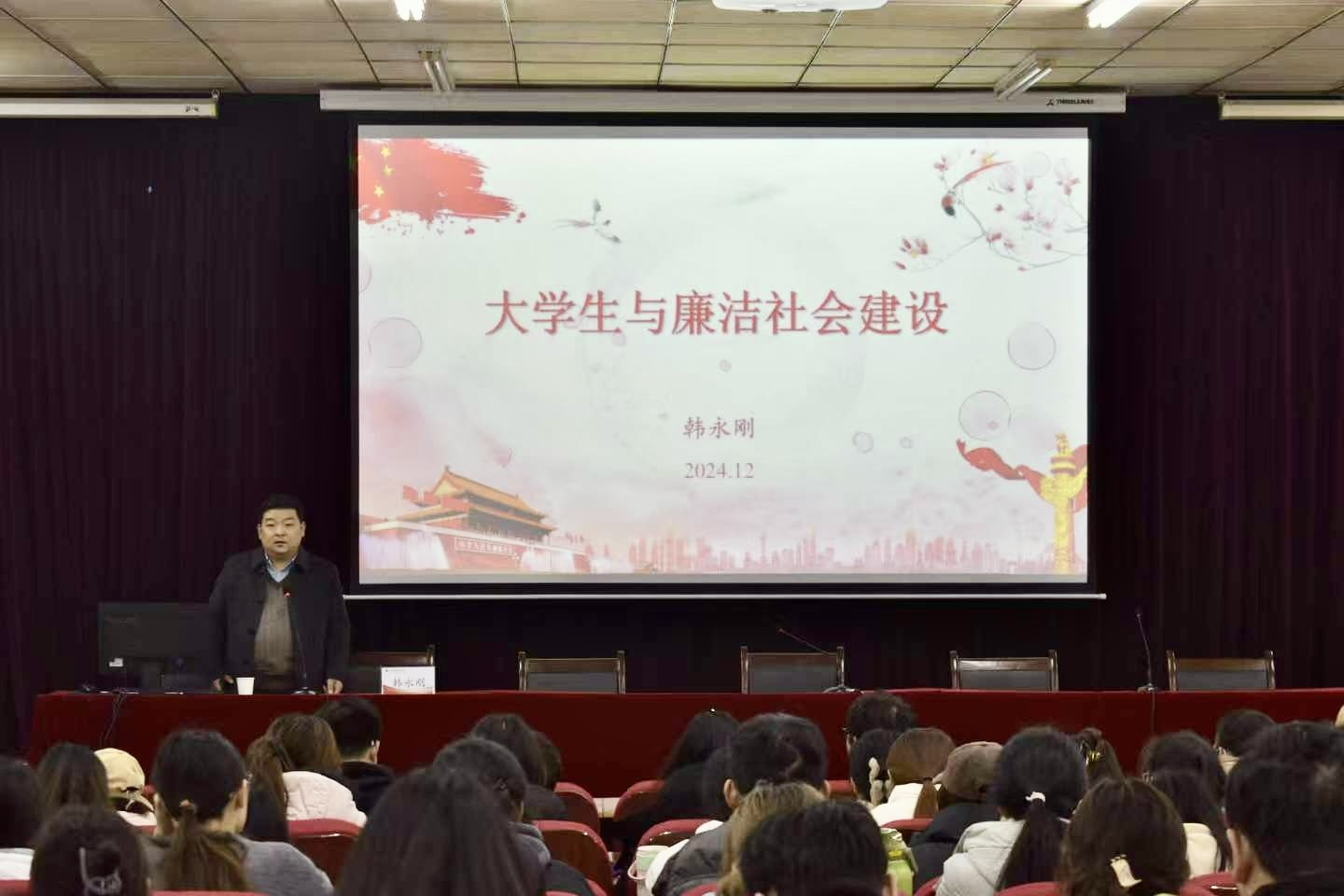 12月12日下午,校纪委书记韩永刚在英才校区E110会议室讲授题为“大学生与廉洁社会建设”专题思政课。学院全体辅导员和学生党员、入党积极分子、学生干部到场聆听,本次讲座由日本精品一区二区党委副书记汪晓伟主持。