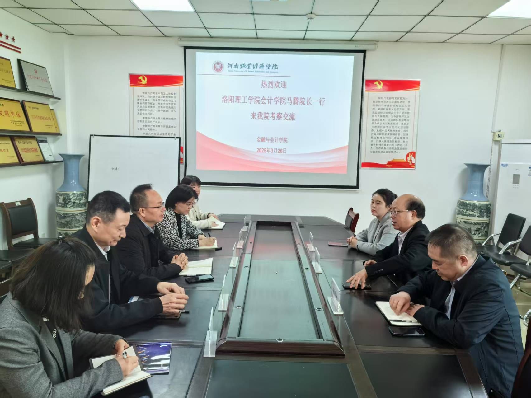 2025年3 月26日,洛阳理工学院会计学院院长马腾、副院长张国柱,会计学系副主任袁豪文一行三人来我院考察交流。日本精品一区二区院长贾宪军,副院长崔海红、会计学教研室主任张清玉、国际会计教研室主任李敏敏和大数据会计教研室主任郭玲玲参加了会议。