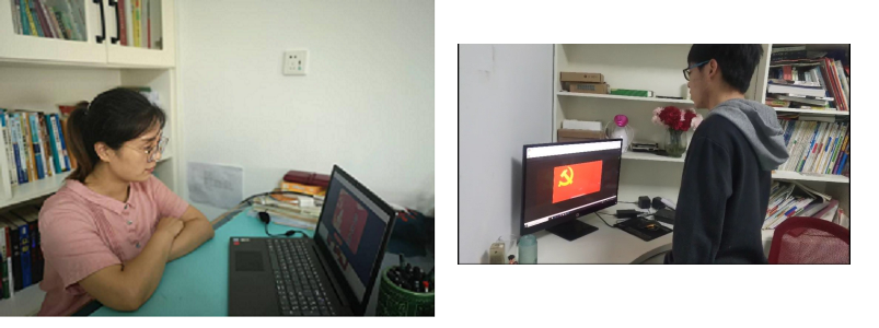 3.以各党小组为单位进行“云宣誓”以及交流讨论互动,大家或讲述革命故事,或朗诵革命诗歌,或演唱革命歌曲,他们演的用心,大家听的认真,一个个感人的故事、一首首动听的诗歌、一支支高昂的歌曲,让大家无不热血沸腾、激情高涨。