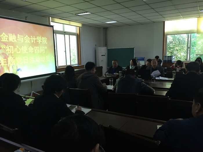 会上,陈书记首先对“初心使命四问”主题党日活动进行安排部署,详细解读聚焦的主题、重点和务求实效的要求。就如何做好党员“初心使命四问”主题党日活动,陈书记强调:全体党员要切实紧扣主题教育“守初心、担使命、找差距、抓落实”总要求,全面叩问初心使命,对标对表,反躬自省,扪心自问,问出初心使命,问出责任担当,问出差距不足,问出努力方向,不断增强“四个意识”、坚定“四个自信”、做到“两个维护”,以彻底的自我革命精神解决违背初心和使命的各种问题,立足本职,自我改造、自我净化、自我完善、自我提升,为更好落实立德树人根本任务,推动中原出彩凝聚思想共识、提供精神动力。学院领导班子成员分头到各支部参加党日活动,各党支部要精心谋划部署,科学安排,把握明确的时间节点,结合不同群体党员的实际,灵活方式方法,把开展“初心使命四问”主题党日活动作为支部党员干部学、查、改、做的有效载体,相互融合、一体推进。要确保主题党日活动做规范、做到位,要以此次主题党日活动为契机,把主题教育不断引向深入。