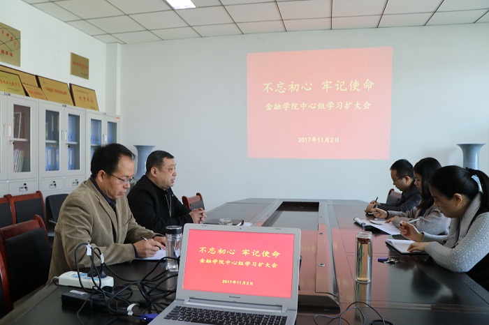 11月2日上午9点,金融学院在514会议室召开以《不忘初心 牢记使命》为主题的理论学习中心组学习扩大会议,组织与会人员观看《十八、十九届中央政治局常委同中外记者见面》、《2012年11月新一届常委参观复兴之路展览》、《习近平总书记带领中央政治局常委瞻仰中共一大会址》等视频。会议由党总支书记胡红林主持。
