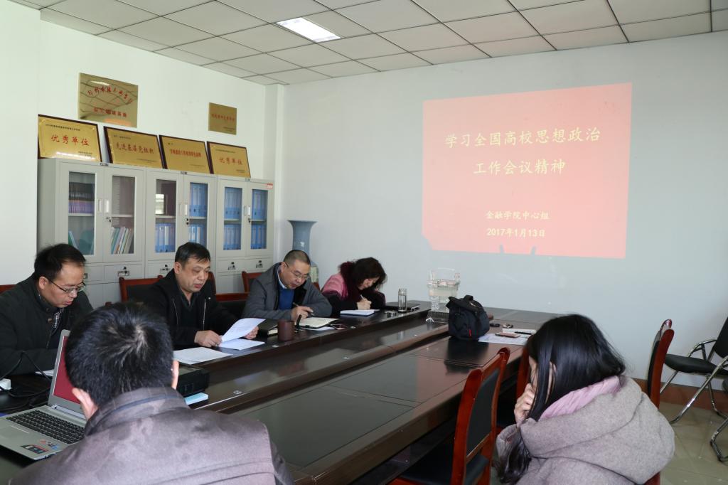 2017年1月13日上午,金融学院在514会议室召开中心组扩大会议,进行专项学习,学习贯彻全国高校思想政治工作会议精神。会议由党总支书记胡红林主持。