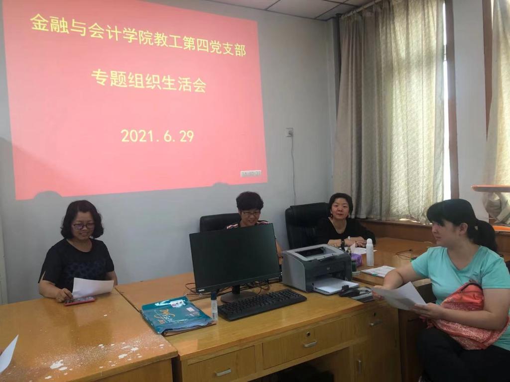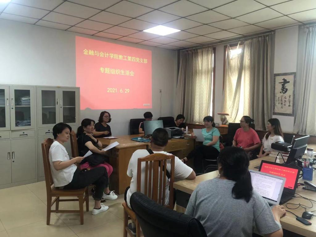 按照学校组织部《关于开展2021年6月份党支部主题党日活动的通知》精神和具体要求,6月29日下午,日本精品一区二区教工第四党支部在510室召开了党史学习教育专题组织生活会。会议由党支部书记邓瑜主持。