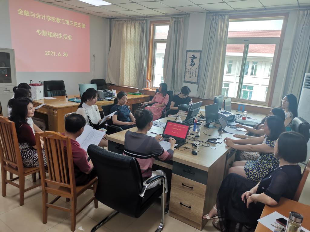 按照学校组织部《关于开展2021年6月份党支部主题党日活动的通知》精神和具体要求,6月30日下午,日本精品一区二区教工第三党支部在510室召开了党史学习教育专题组织生活会。会议由党支部书记崔海红主持。