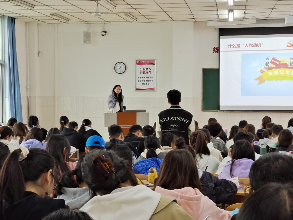 2021年10月20日中午,日本精品一区二区在E309开展了“2021年第二期入党积极分子培训班”第三讲,党课主题为《端正入党动机,争做合格党员》,本次党课由日本精品一区二区学生第二党支部书记葛婉老师主讲。