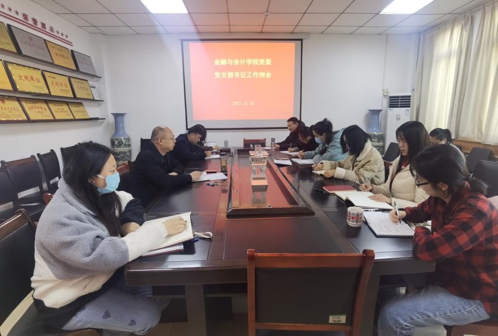 学院党委书记陈复昌分别与各个支部书记就深入学习十九届六中全会精神、深入推进党史学习教育、发挥教工党支部在深入开展课程思政建设和师德师风建设中的作用、学生支部在学风建设中的作用和支部党建品牌创建与特色凝练等工作进行交流。最后,陈书记对各支部下一步的工作提出了要求,他指出:党支部要以提升组织力为重点,着力发挥在政治引领、规范党的组织生活、团结凝聚师生、促进学院中心工作等方面下功夫。一是进一步深入学习和做好《中国共产党普通高等学校基层组织工作条例》的贯彻与落实,切实全面加强支部党建与思想政治工作;二是深入推进“两化一创”强基引领行动,以标准化、规范化建设夯实党建基础。对标对表“七个有力”,坚持目标引领、问题导向和结果导向,创先争优,不断提升培育创建样板支部效果;三是持续深入推进党务业务深度融合,以党建高质量推进人才培养工作高质量。