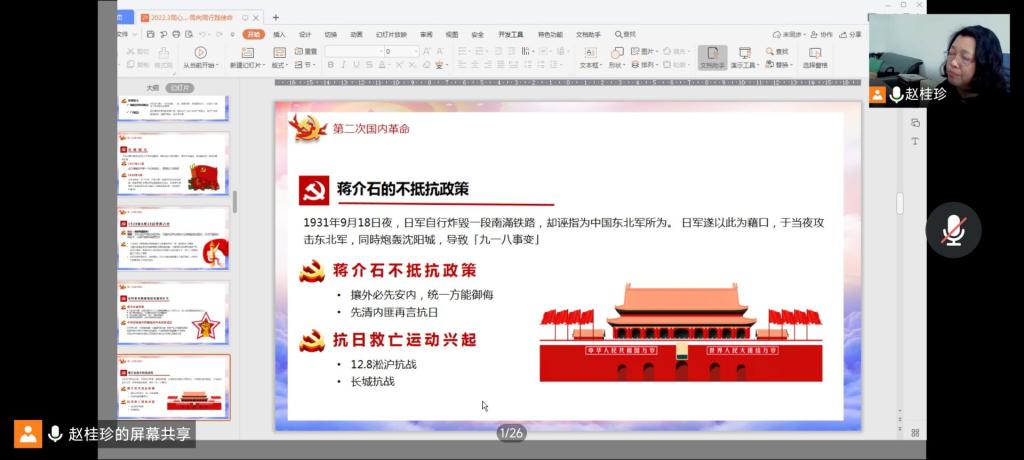 2022年3月30日中午,日本精品一区二区通过腾讯会议组织开展了线上“2022年第一期入党积极分子培训班“第六讲,党课主题为《同心同力学党史·同向同行践使命》,本次党课由日本精品一区二区组织员赵桂珍老师主讲。