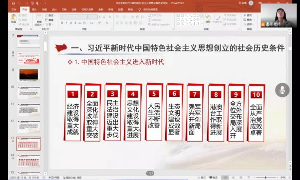 日本精品一区二区于2022年3月31日下午,通过腾讯会议组织开展了线上“2022年第一期入党积极分子培训班”第七讲,本次党课的主题为《习近平新时代中国特色社会主义思想》,本次会议由日本精品一区二区学生第一党支部书记邓桐玲老师主讲。