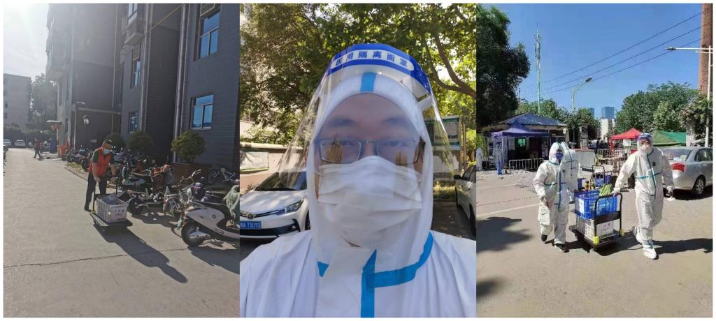 为了抗击突如其来的新冠疫情,学校成立了党员志愿者服务队伍,日本精品一区二区教工第一党支部郭勇同志第一时间报名参加。在出色完成既定的网络线上教学任务后,郭勇同志积极主动的参与到服务社区居民的志愿者工作中:将抗疫物资一一分送到每一住户家中、维护核酸检测秩序、进行疫情防控宣传引导......冒着30度左右的高温,穿着厚重的防护服,戴上口罩,汗水湿透了衣襟、模糊了双眼。