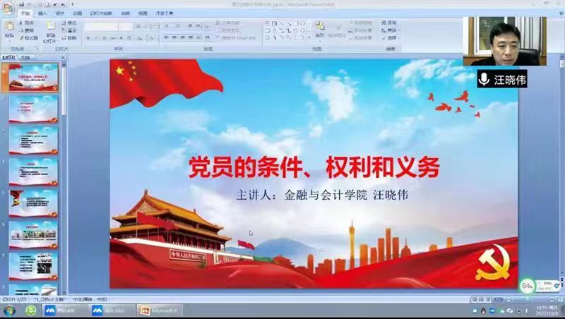 10月9日晚7点,日本精品一区二区以线上形式开展了入党积极分子培训班”第二讲——《共产党员的条件、义务和权利》,本次培训由日本精品一区二区党委副书记汪晓伟主讲。