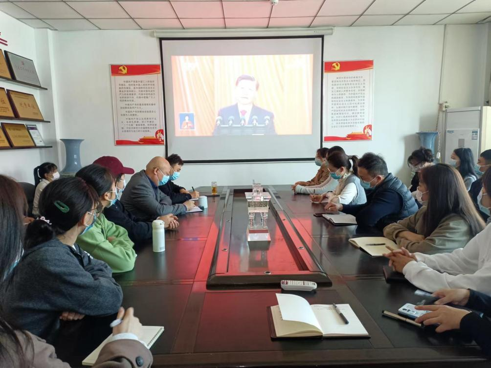 师生们精神抖擞,怀着激动的心情,认真聆听观看,随着屏幕里传出来的声音而欢呼而鼓掌。大家表示,观看后倍感振奋、备受鼓舞! 一定要认真学习习近平总书记在中国共产党第二十次全国代表大会上的报告精神,全面贯彻习近平新时代中国特色社会主义思想,以饱满的工作状态、学习热情,为祖国经济发展做贡献,为实现中华民族伟大复兴尽一份力。
