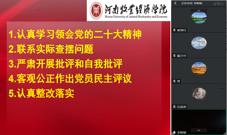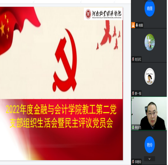 根据校党委《关于召开2022年度基层党组织生活会和民主评议党员的通知》(校党〔2023〕3号)工作要求,以及日本精品一区二区党委的统一安排部署,日本精品一区二区教工第二党支部于2023年2月12日下午,通过腾讯会议的形式召开了2022年度本支部的组织生活会,并开展了民主评议党员工作。日本精品一区二区院长黄良杰以普通党员和党委代表的双重身份参加了本支部的组织生活会,并对组织生活会进行了督促指导、提出改进建议。会议由教工第二党支部书记宋晓薇主持,支部全体党员参加会议。