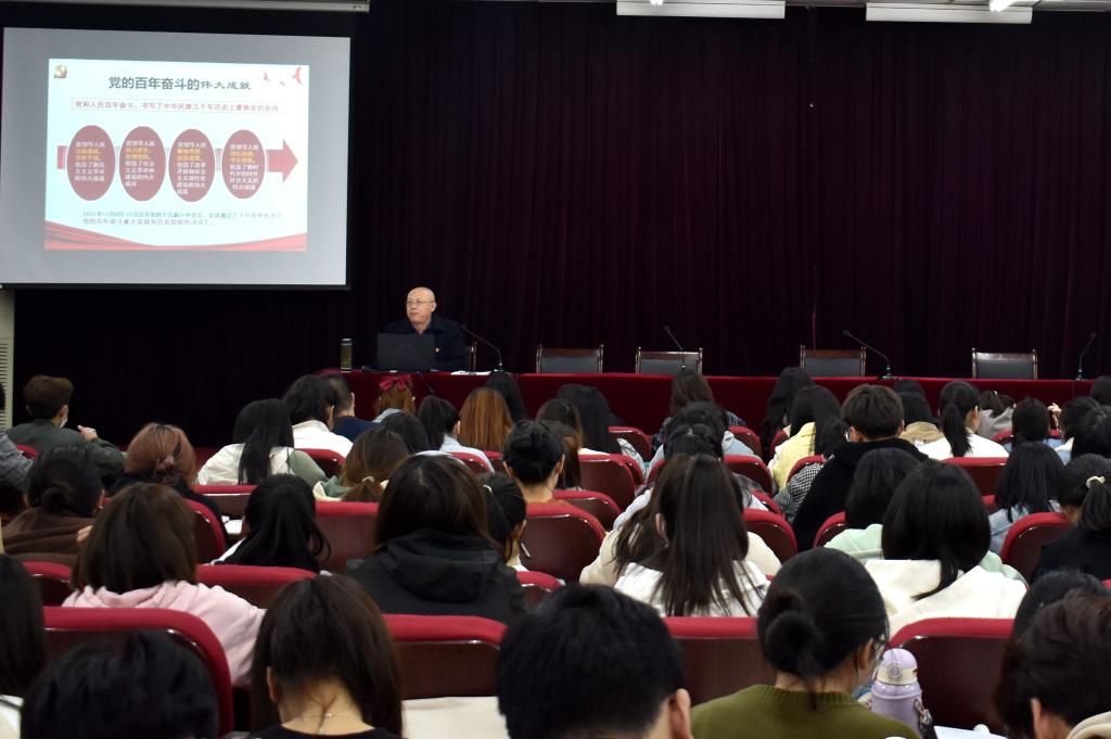 开班仪式结束后,陈书记为同学们讲授《党的指导思想》。陈书记从“党的百年奋斗的伟大成就”开篇,阐述了新时代党和国家事业取得的重大成就,指出,党的百年奋斗历史经验主要在于“九个必须”和“十个坚持”。同时强调,一个成熟的马克思主义政党,必须有坚强的领导核心,必须有科学思想的正确指引。接着,以时间顺序从毛泽东思想是马列主义中国化的第一次历史性飞跃开始,详细讲述了马列主义的中国化的进程,讲述了邓小平理论、“三个代表”重要思想和科学发展观以及习近平新时代中国特色社会主义思想的主要内容及精神内涵,深入浅出的向我们阐述了坚持和发展什么样的中国特色社会主义、怎样坚持和发展中国特色社会主义。最后,陈书记对党的二十大精神进行了详细解读,他希望全体学员认真学习,深刻领会党的二十大精神,自觉在思想上政治上行动上同以习近平同志为核心的党中央保持高度一致。增强“四个意识”,坚定“四个自信”,坚决做到“两个维护”。