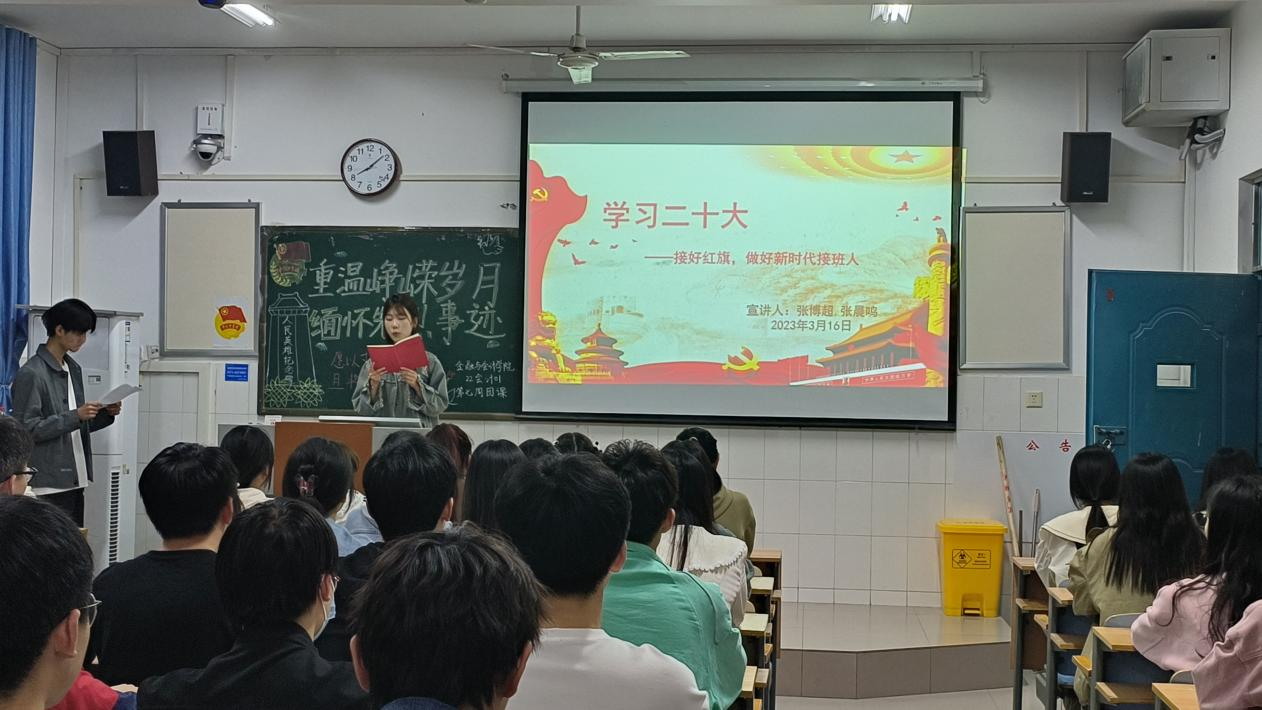 此次宣讲活动中,宣讲人带领大家学习了习近平总书记在党的二十大报告中对广大青年提出的“立志做有理想、敢担当、能吃苦、肯奋斗的新时代好青年”的重要要求。通过回望党的奋斗史与新中国的成就、并结合自身的成长经历,宣讲人向同学们阐述了当代青年应如何树立远大理想争做新时代接班人,为中国特色社会主义事业而奋斗。