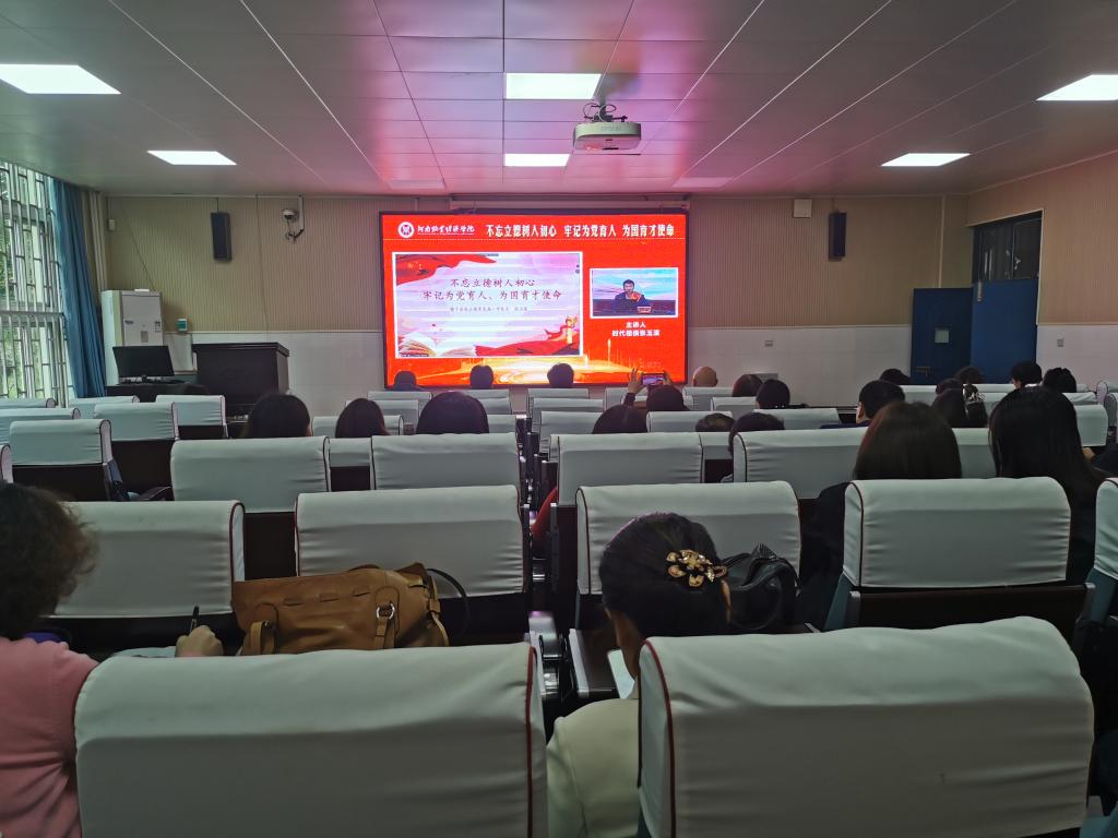 10月12日下午,日本精品一区二区在英才校区综合实验楼W102会议室视频分会场组织全体教职工集体收看时代楷模张玉滚《不忘立德树人初心 牢记为党育人、为国育才使命》报告会。