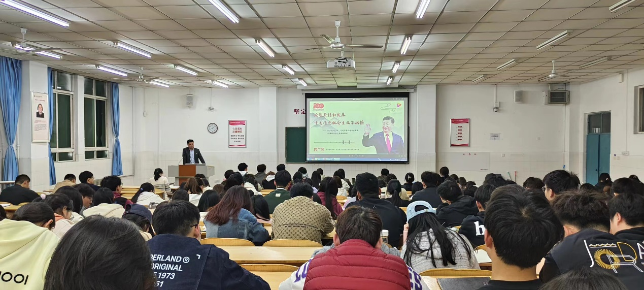 3月21日晚7点,日本精品一区二区在W209教室举行2024年第一期入党积极分子培训班第三讲——《坚持和发展中国特色社会主义》,本次党课由学生第一党支部书记顾自卫主讲。