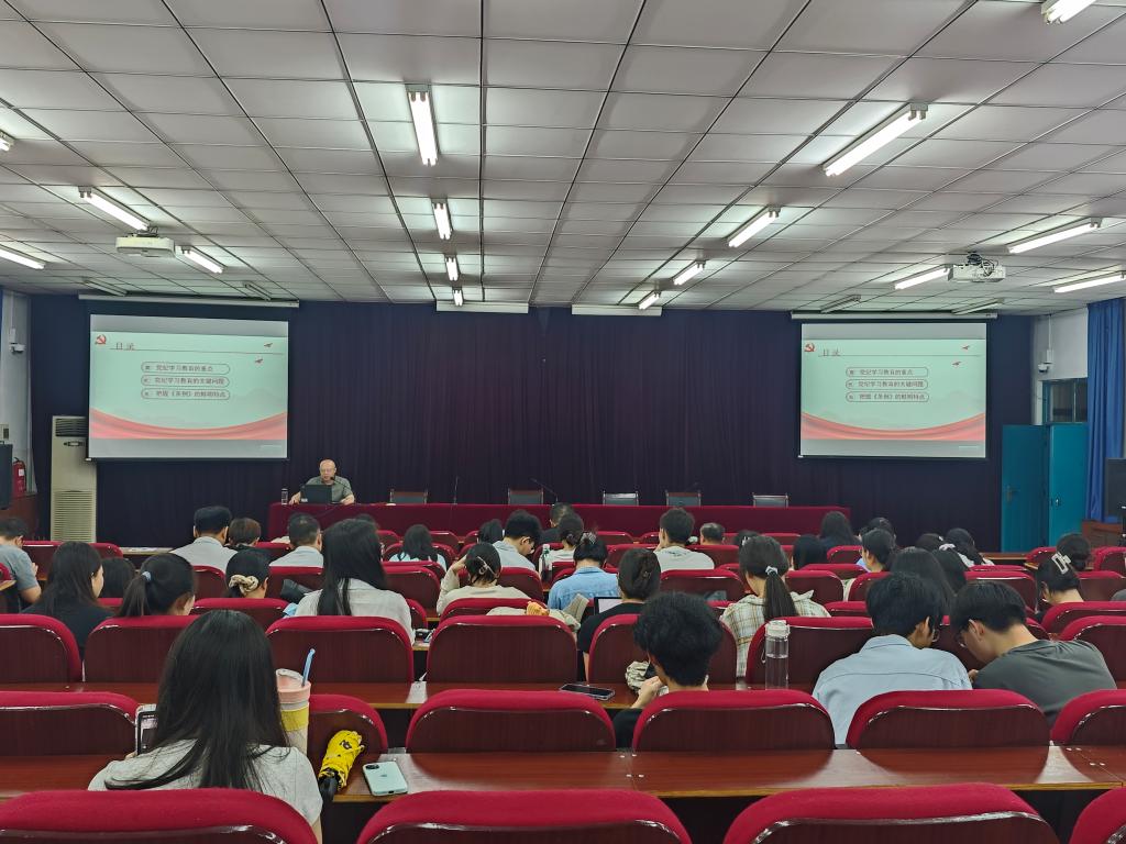 陈书记为与会党员深入讲授了党纪学习教育的一个重点内容、四个关键问题和《中国共产党纪律处分条例》的五个鲜明特点,深刻阐述了《条例》的思想内涵、主旨要义和规定要求。通过本次党课进一步深化了师生党员对加强党的纪律建设的认识。陈书记强调,党的纪律是党的各级组织和全体党员必须遵守的行为规则,是维护党的团结统一、完成党的任务的保证。马克思主义政党相比其他任何政党都要重视严格的纪律约束和规范。修订后的《条例》对各级各类党组织和全体党员学纪、知纪、明纪、守纪提出新的更高要求,我们要借助《条例》学习贯彻全面从严治党要求。