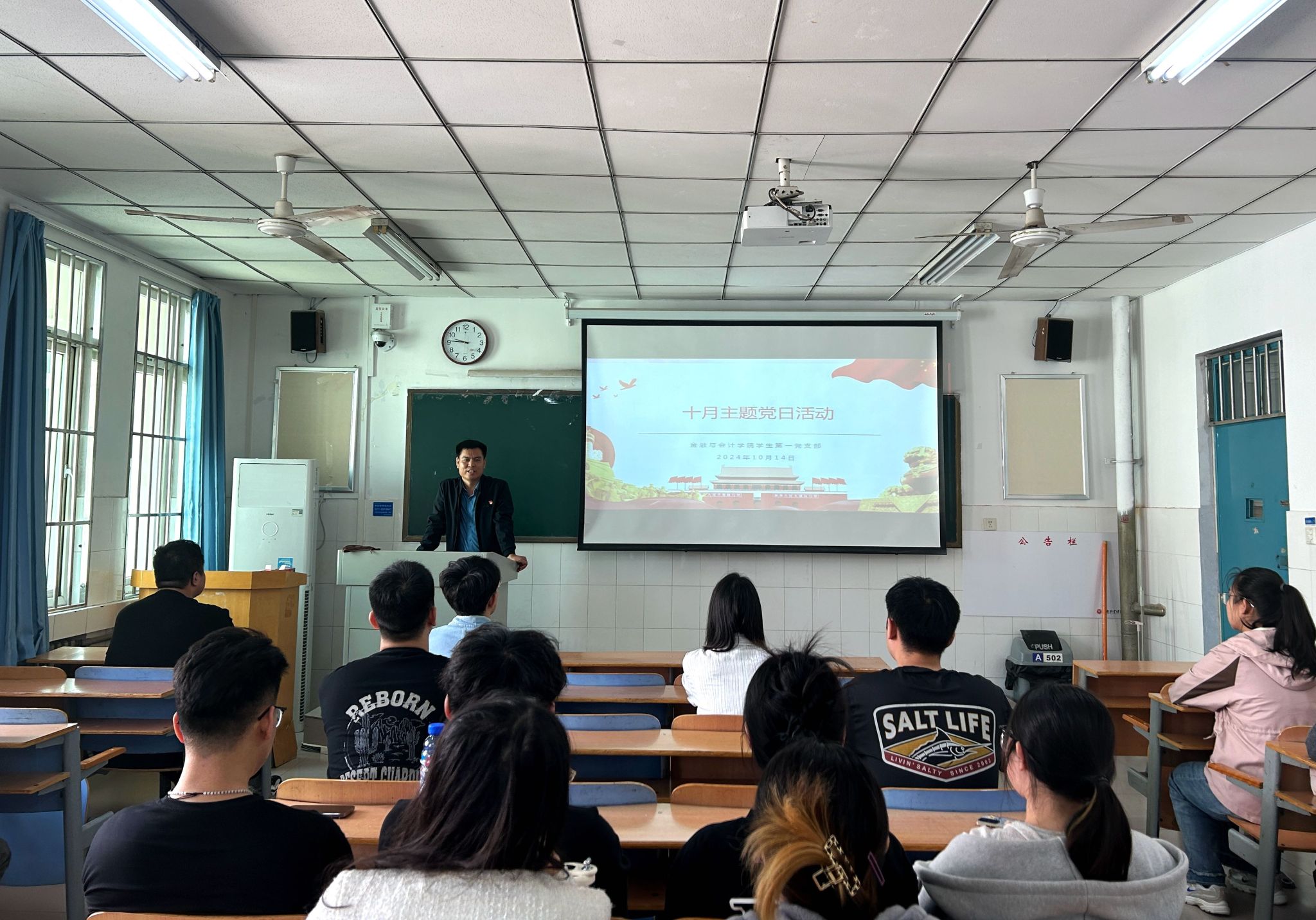 10月14日中午,日本精品一区二区学生第一党支部在教学楼A502组织开展十月份主题党日活动,深入学习领会习近平总书记在党的二十届三中全会第二次全体会议上的重要讲话精神并开展心得交流与分享。支委全体成员及全体学生党员参加了活动。会议由学生第一党支部书记顾自卫主持。