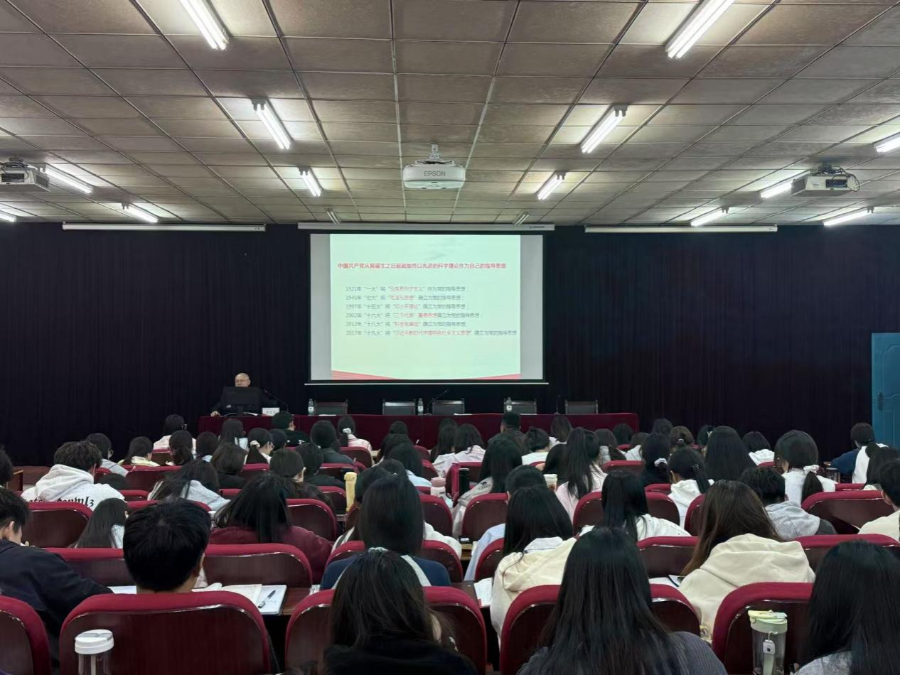 开班仪式结束后,陈复昌书记为同学们带来了《党的指导思想》专题讲座。陈书记以党的百年奋斗历程中取得的伟大成就和积累的宝贵历史经验作为切入点,深入剖析指出,我们党之所以能够在不同历史阶段取得举世瞩目的重大成就,其根本原因就在于党始终坚持以马克思主义科学理论为指导,并能够紧密结合不断变化的实际情况,持续推进理论创新。随后,陈书记详细阐述了马克思列宁主义、毛泽东思想、邓小平理论、“三个代表” 重要思想、科学发展观,以及习近平新时代中国特色社会主义思想的主要内容和核心思想精髓。他着重强调,党的指导思想是指引党前行的行动指南,是全体党员必须始终坚守的根本原则。其中,习近平新时代中国特色社会主义思想是对马克思列宁主义、毛泽东思想、邓小平理论、“三个代表” 重要思想、科学发展观的继承与创新发展,是当代中国的马克思主义,也是二十一世纪马克思主义的生动体现。这一思想凝聚了中华文化和中国精神的时代精华,是党和人民在长期实践中积累的经验总结和集体智慧的结晶,是中国特色社会主义理论体系的重要组成部分。它为全党全国各族人民实现中华民族伟大复兴的中国梦提供了明确的行动指南,必须长期坚持并不断丰富和发展。