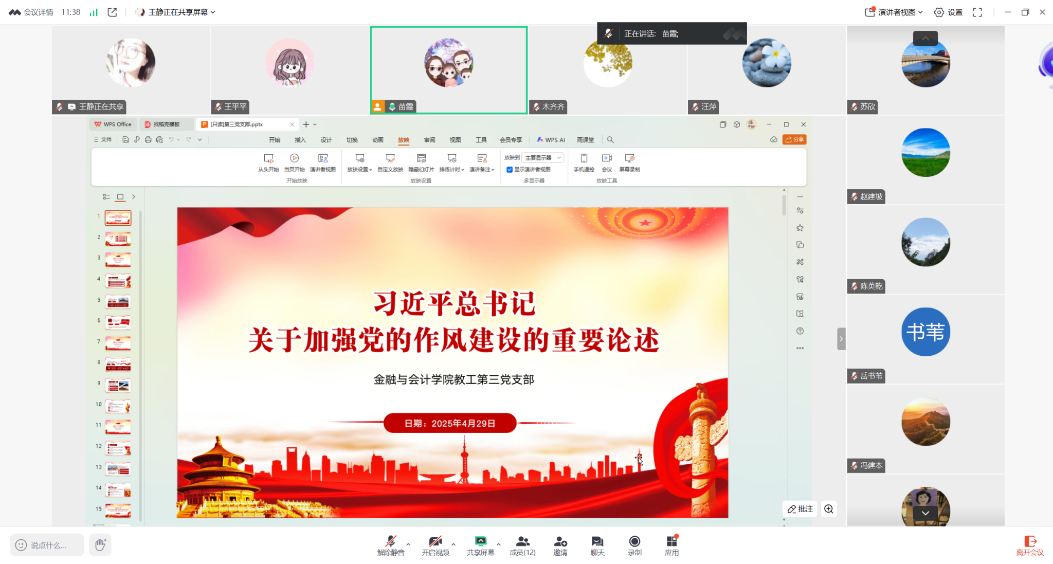 2025年4月29日,日本精品一区二区教工第三党支部以线上会议形式召开《习近平总书记关于加强党的作风建设的重要论述》专题学习会。会议由教工第三党支部书记苗霞同志主持,支部全体党员参加会议。
