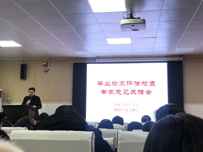 按照评估办要求,专家组对论文内容、论文格式、论文档案情况以及相关表格填写等进行了全面检查,对毕业论文各环节的管理及毕业论文的质量等方面进行了重点检查。下午,学院召开了专家反馈会,我院全体老师参加了专家反馈会,各位专家依次对我院本科生毕业论文的情况进行了总结评价,也中肯地指出了论文选题、开题报告、论文撰写和论文评阅、答辩等环节中存在的问题,并提出了整改建议。