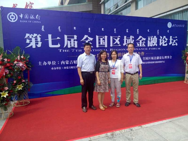 应全国区域金融论坛理事会邀请,我院副书记兼副院长贾宪军博士带领陈红玲、张雪凤两位副教授,于7月22日赴内蒙古财经大学参加了第七届全国区域金融论坛。我校社科办宋平主任一同参加了会议。