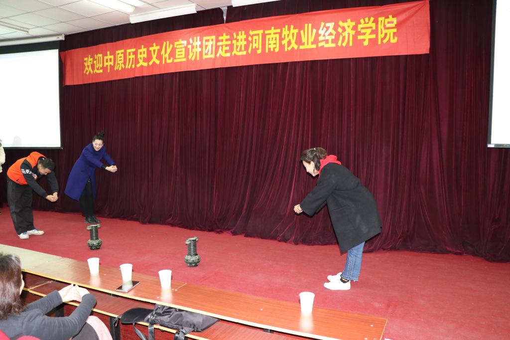2月27日下午,河南博物院中原文化宣讲团在河南博物院社会教育服务部主任、文博副研究员林晓平带领下走进河南牧业经济学院金融学院课堂,结合我院典当专业课程安排,给学生做了一次精彩的宣讲。本次宣讲现场气氛十分热烈,宣讲员带来了从春秋战国到明清时期的名贵展品和游戏器材,为同学们讲解文物的由来、历史价值和古代文明礼仪知识。