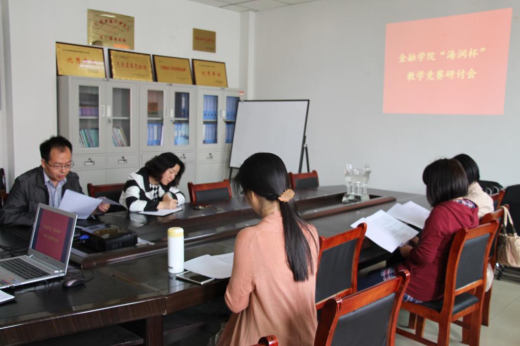 根据“河南牧业经济学院关于开展2016年度“海润杯”教师教学技能竞赛的通知”文件精神,金融学院及时制定了《金融学院2016年度“海润杯”教学竞赛活动方案》,并于4月12日上午在会议室召开了“海润杯”教学技能竞赛研讨会。研讨会由金融学院党总支副书记兼副院长贾宪军主持,副院长王培玲、教学秘书及各教研室主任参加。