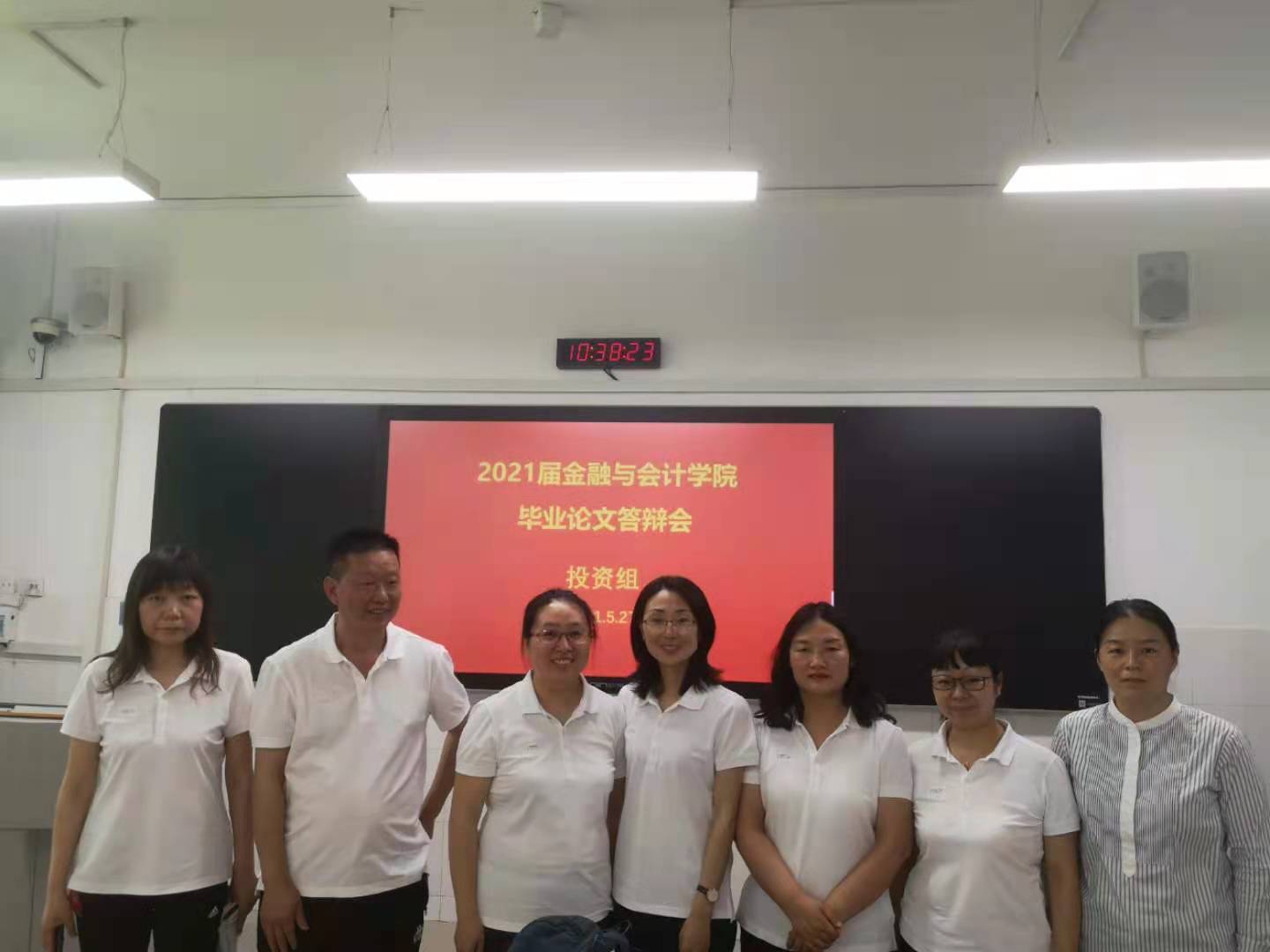 2021年5月27日,金融与会计学院投资学专业2021届本科毕业生第一批毕业论文答辩在英才校区A楼举行。经过重复率检测、指导老师评阅、院内盲审等环节,投资学专业毕业生有202人获得第一批答辩资格。我院投资学专业全体指导教师参与了论文答辩工作。