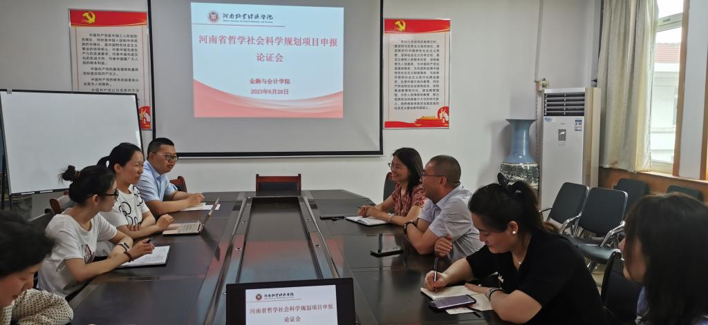 6月28日下午2:00,日本精品一区二区在教学楼514会议室召开了2023年度河南省哲学社会科学规划项目、决策咨询项目和专题项目申报论证会。会议由副院长崔海红博士主持,黄良杰教授、宋晓薇博士应邀作为院内专家进行论证指导,学院相关教师参加了此次会议。