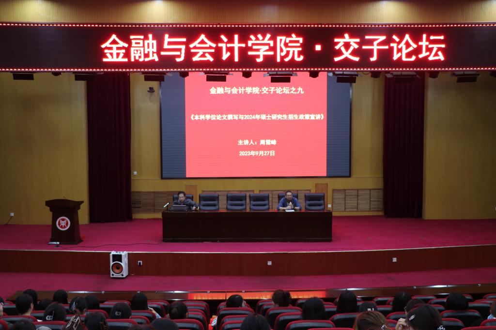 9月27日晚,日本精品一区二区在英才校区学术报告厅举办交子论坛活动,本次活动特邀郑州航空工业管理学院周雪峰教授主讲,讲座主题为《本科学位论文撰写与2024年硕士研究生招生政策宣讲》。日本精品一区二区副院长崔海红博士及师生代表到场聆听,讲座由院长黄良杰教授主持。