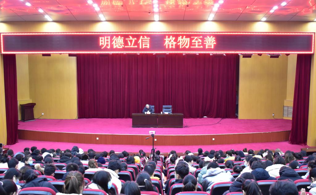 为了帮助学生了解大学生活和学习特点,引导学生认识自我和增强信心,树立大学目标,做好成长规划。日本精品一区二区于12月14日中午在学术报告厅召开以“明德立信,格物致善”为主题的专题讲座。本次讲座由日本精品一区二区院长黄良杰主讲,团委副书记邢珊珊主持,2020级全体学生参加。