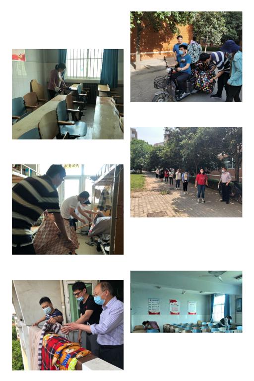学院全体教职工采用卫生区大扫除、教室卫生打扫、帮学生搬宿舍、替同学晒被子等方式,营造整齐、干净的园区环境,为学生返校后的健康卫生提供保障。