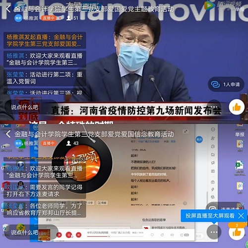 为深入学习习近平总书记在抗疫防疫系列会议上的讲话精神以及郑邦山厅长在2.14新闻发布会上的讲话精神,加强大学生党员“爱国爱党”信念教育,日本精品一区二区学生党支部于2020年2月27日下午一点通过网络平台召开了一次全体党员大会,进行集中学习,各党支部书记、支委老师、以及全体学生党员共同参加了本次活动。