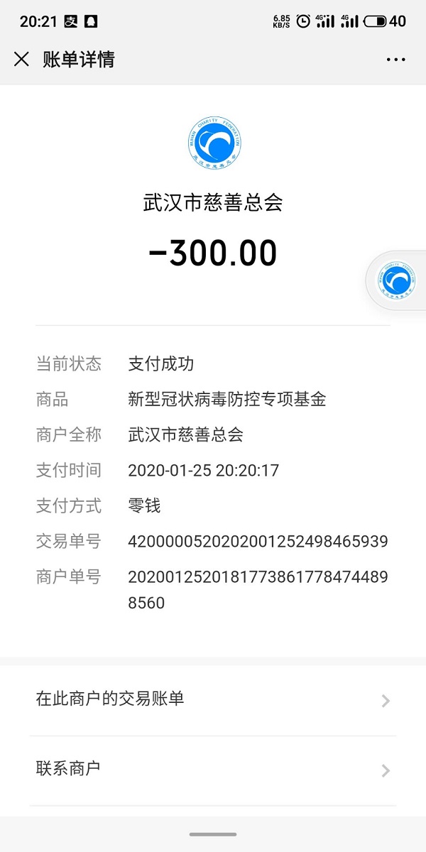 为武汉捐献上了一份关爱