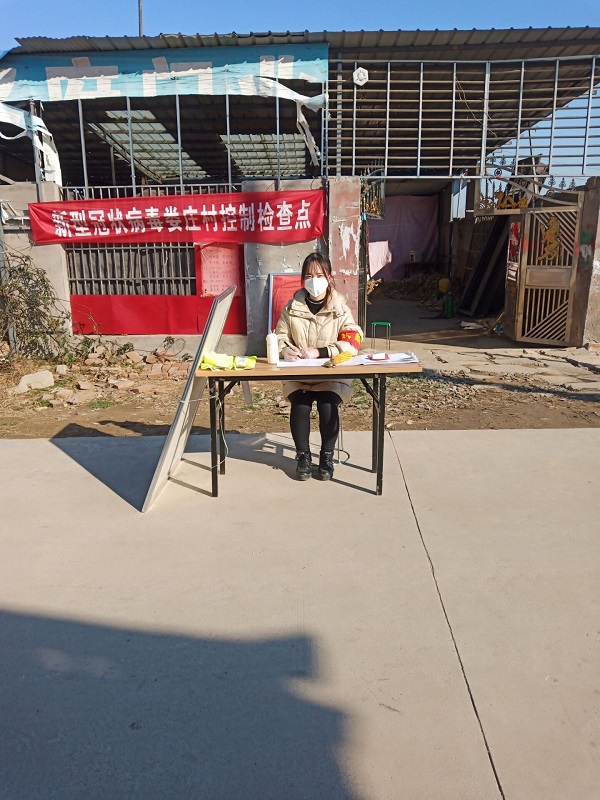 2020年2月15日,我来到检查卡点成为了一名光荣的志愿者。村干部告诉我,卡点条件艰苦,女孩子可能更难适应,而且卡点的设置不是临时的,会一直持续到疫情好转。我说:“我是党员,关键时刻就要冲锋在前,我虽然虽然学的不是医护专业,但现在国难当头,我也想为国家出一份力,请让我留下吧。”这几天,我主动加入村口卡点体测抗疫工作中,每天一早到卡点帮助村干部开展工作,测体温,登记来往人员,宣传防范新型冠状病毒知识,引导群众不聚餐、不到人群密集场所,同时做到不信谣、不传谣、不造谣,关注政府官方权威发布,用自身行动拉近防护网,阻断病毒传递线。