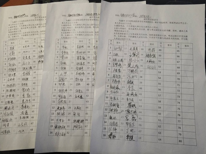 座谈会后,全院辅导员老师分别召开了诚信主题教育班会及签订诚信承诺书活动。老师们结合诚信典型人物及事件,通过列举当下大学生存在的不诚信现象以及危害影响,宣传我院诚信教育精神,呼吁学生们从自身开始,用实际行动坚持诚信,养成良好的道德品质。在老师们的呼吁下,全院学生签订了诚信承诺书,为自己人生的诚信写上光彩的一笔。