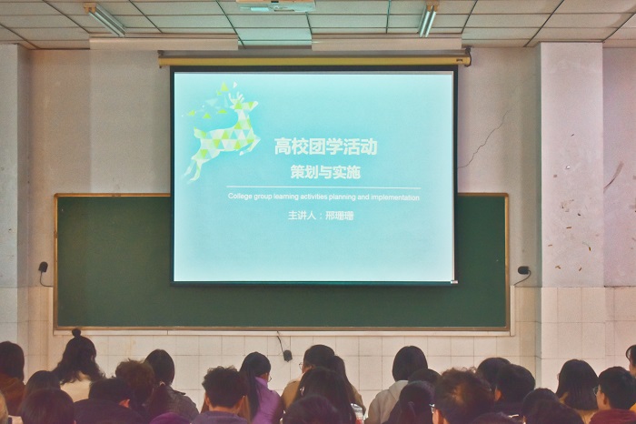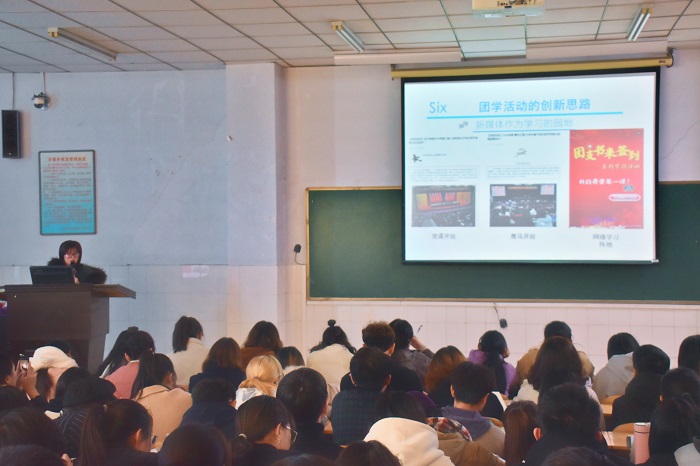 会议伊始,邢老师强调了团学活动的特点、功能以及意义,并通过多组照片的展示让同学们了解了团学活动的创新思路和团学活动的特点,包括目的性、主体性、选择性、多样性。接着,邢老师耐心的讲解了团学活动的类型,包括思想教育、校园文化教育、大学社会实践等形式,并强调团学活动是为了让大学生们能更好的在大学中生活,更加的锻炼自己,培养大学生的品质。其实施分为以下四项,分别是活动主题、活动背景、活动时间和活动内容。通过丰富的案例讲解,让同学们知道一个好的团学活动需要充分的准备,如人员的安排、物资的筹备以及有效的沟通等。最后,邢老师提出团学活动应多创新,做到以团支部作为活动主体,以团干部作为活动主角,以新媒体作为活动平台,充分开展爱国主义、德育美育和实践育人等方面,具有创新意义的第二课堂活动。