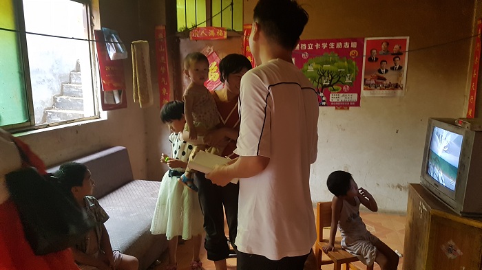 首先,志愿者服务队来到刘娟、张宝国家,通过调查得知,家中成年人为小学学历,家中9口人,五个孩子三个上小学,两个还没上学,家庭人均年收入2000-3000,由村民选举成为贫困户,并参加低保,夫妻二人进城务工,家中孩子由老人看护,希望能获得精准扶贫关于生产技术和就业方面的帮助。在访问调研后,志愿者们耐心的为孩子辅导功课,希望能尽微薄之力为孩子解决一些学业上的难题。刘娟和张宝见此,不断表示对志愿者服务队的感谢,并十分热情地接待。