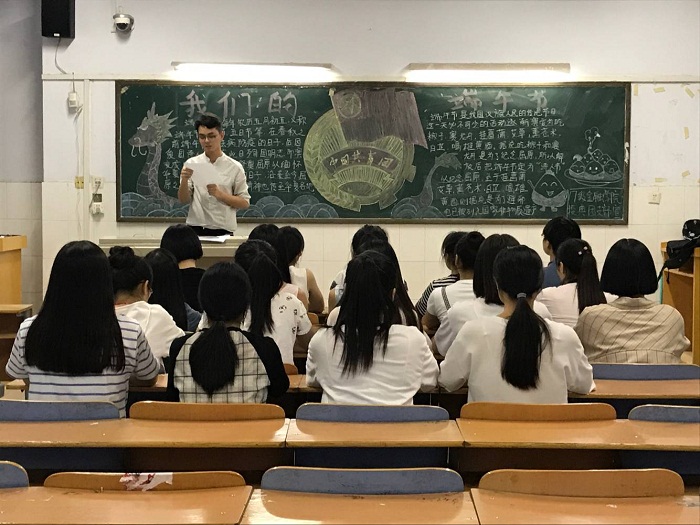 拨粽思乡,踏实学习,食粽遥思,玩转端午。为了纪念屈原,弘扬民族精神,继承我国优秀的传统文化,在端午佳节来临之际,我院于2018年6月14日晚在教室A109-111、A113-117组织17级全体团员进行了“我们的节日——端午”主题团课活动。
