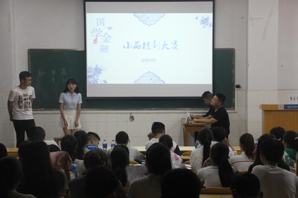 为扩大“国学·金融”活动的影响力,激发同学们学习国学经典和金融知识的热情,丰富大学生的校园生活,活跃校园气氛,给学生提供一个展现自我、挑战自我的舞台,金融学院于6月1日在教学楼w109举行了“国学·金融”系列活动—小品短剧大赛。