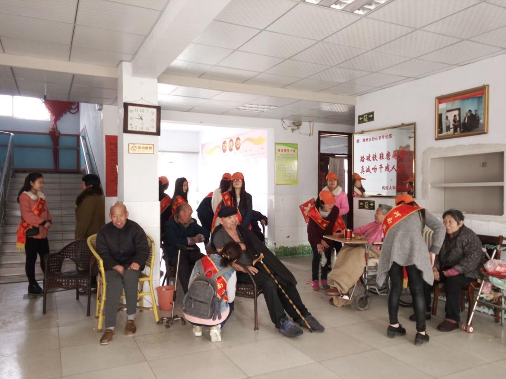 志愿者们经过一多小时的行程来到舒心老年公寓,按照提前的分工,志愿者们有序的开展志愿服务行动。有的同学陪几位老人聊天,有的同学来到厨房和餐厅开展卫生大扫除,有的同学帮助老人们来到院子里活动并表演文艺节目等等。“老吾老以及人之老”,在行动中,志愿者们深刻感知和领悟“尊老爱老”的传统美德,在老人们和蔼可亲的笑容中,同学们收获了一份真诚的温暖和感动。