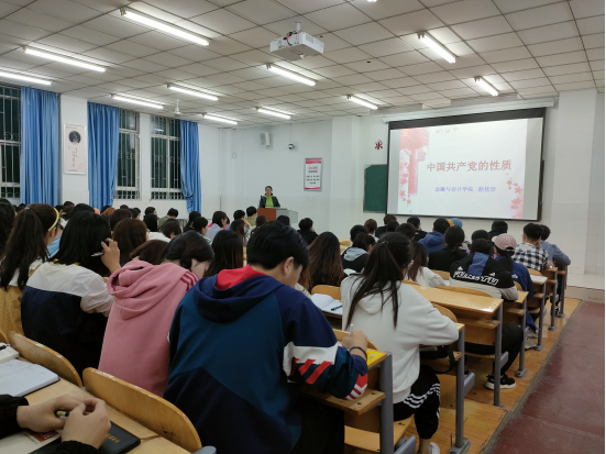 培训期间,赵老师从“两个先锋队”、“一个核心领导”和“三个代表”三个方面展开,详细阐述了中国共产党的性质。以李大钊、陈独秀等共产党员的事迹为例说明“中国共产党是中国工人阶级的先锋队”;以国共合作、香港澳门回归为例说明“中国共产党是中国人民和中华民族的先锋队”;以改革开放、“一带一路”的建设为例说明“中国共产党是中国特色社会主义事业的领导核心”;以中国航天、互联网技术的发展为例说明“中国共产党代表中国先进生产力的发展要求”;以“社会主义核心价值观”、成功举办北京奥运会为例说明“中国共产党代表中国先进文化的前进方向”;以“南水北调”、“西气东输”、“青藏铁路”等工程建设以及2020年初的新冠疫情防控为例说明“中国共产党代表最广大人民的根本利益”。最后,赵老师对积极分子们的学习提出四大要求,简要概括为“四个统一”。即,“坚持学习科学文化与加强思想修养的统一”、“坚持学习书本知识与投身社会实践的统一”、“坚持实现自身价值与服务祖国人民的统一”、“坚持树立远大理想与进行艰苦奋斗的统一”。