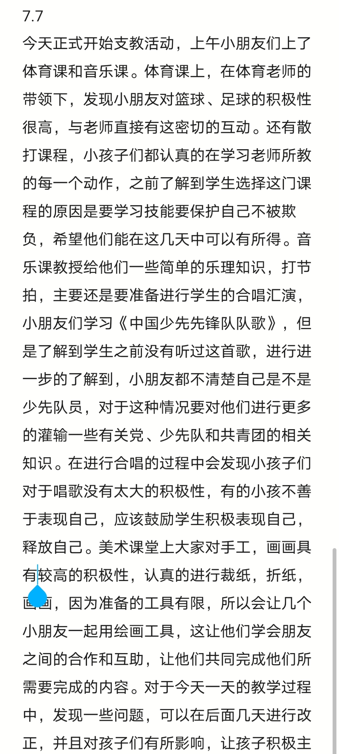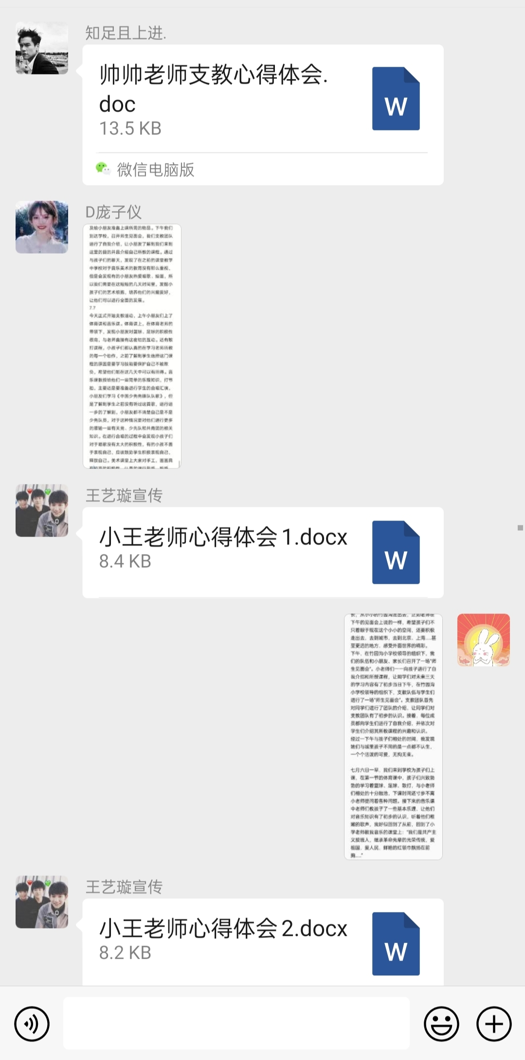 晚上,支教团队队员们纷纷将自己支教心得体会发入微信群中,分享交流各自心得。