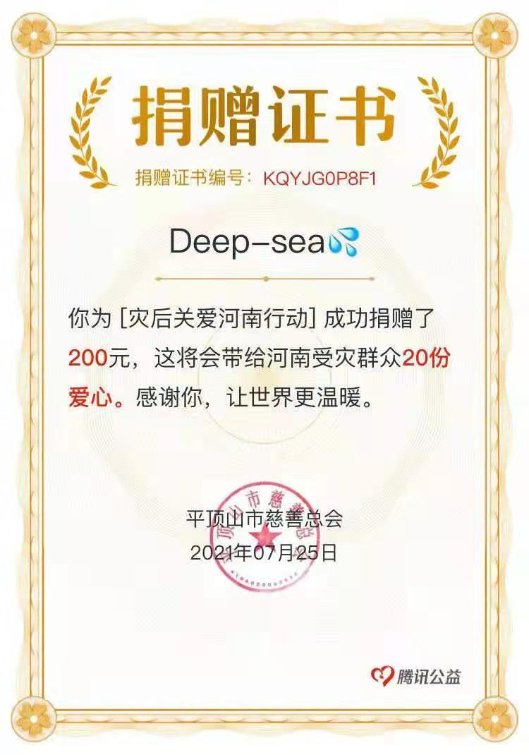 在郑州“7.20”特大洪水中,她积极参加管城区南关街志愿活动,为抗灾救援贡献自己的一份力量。在管城区南关街共青团委老师的指导下,她跟随志愿者团队帮助社区群众整理街道垃圾并宣传灾后传染病、疫情防控知识;前往银基、大观国贸商城,搬卸送往郑州的各地救援物资。在这次志愿活动中,她竭尽全力,积极参与志愿服务活动之中。她也表示:青年大学生肩上有自己需要扛的责任,请祖国放心,强国有我,在今后的学习生活中,竭尽所能贡献自己的青春,将一腔热血投入到社会服务中,不负人民,不负社会,不负国家!