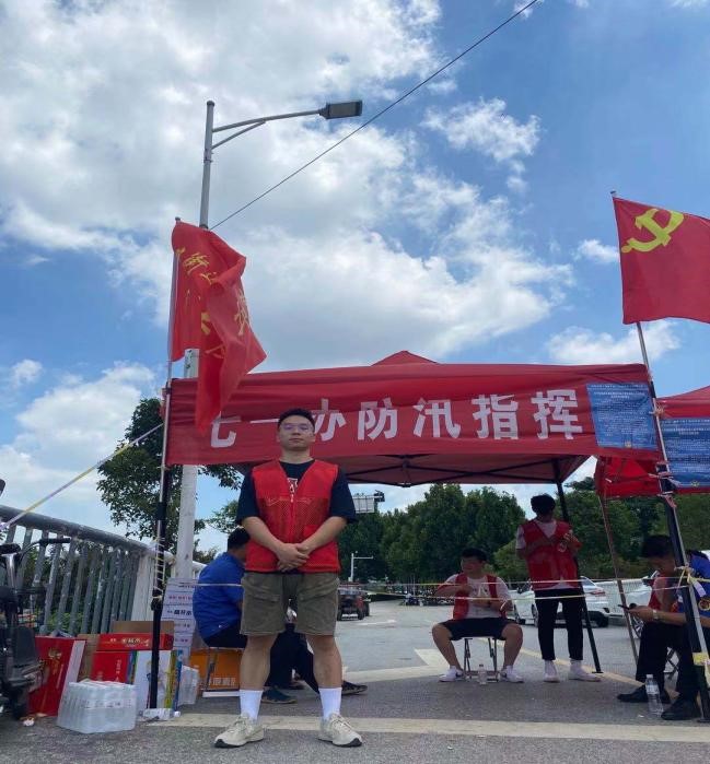 7月22日,他通过网上信息得知郑州暴雨过后贾鲁河上游出现严重洪水险情。周口境内启动一级响应,船闸提闸放水,腾出库容,分流洪峰。上游的泄洪导致周口沙颍河水位不断上升,周边交通道路容易出现险情。7月23日,他和同学积极前往七一防汛指挥处报名参加志愿者。他们在桥上疏散围观群众,在堤口阻拦捕鱼者,观望者,劝导群众绕道行驶,用自己的行动保障了人民群众的生命财产安全。