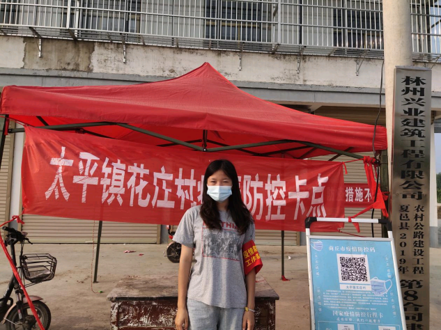 人间八月,骄阳似火。本应该在家享受漫漫暑假的李盼盼同学,不惧夏日的炎热,积极响应组织号召,发挥青年志愿服务精神,在村口设置关卡,不漏掉每一个过往人员,查看他们的核酸检测证明,并统计预约核酸检测人员,组织相关人员进行核酸检测,为打赢防疫战贡献了一份力量。