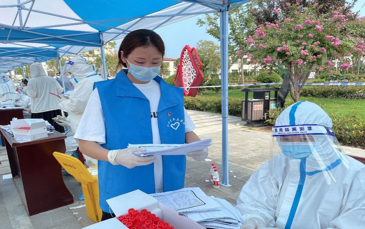 在郑州发生巨大暴雨时,她便做好了要去当志愿者的准备。8月4日,她所在县团委第一时间通过微信公众号、共青团工作群等渠道发布招募信息,她便立刻报名参加。8月7号上午,当地进行全民第一次核酸检测。作为志愿者,她按照安排,协助县团委以及各位医生开展核酸检测秩序维护以及入户排查登记等工作。