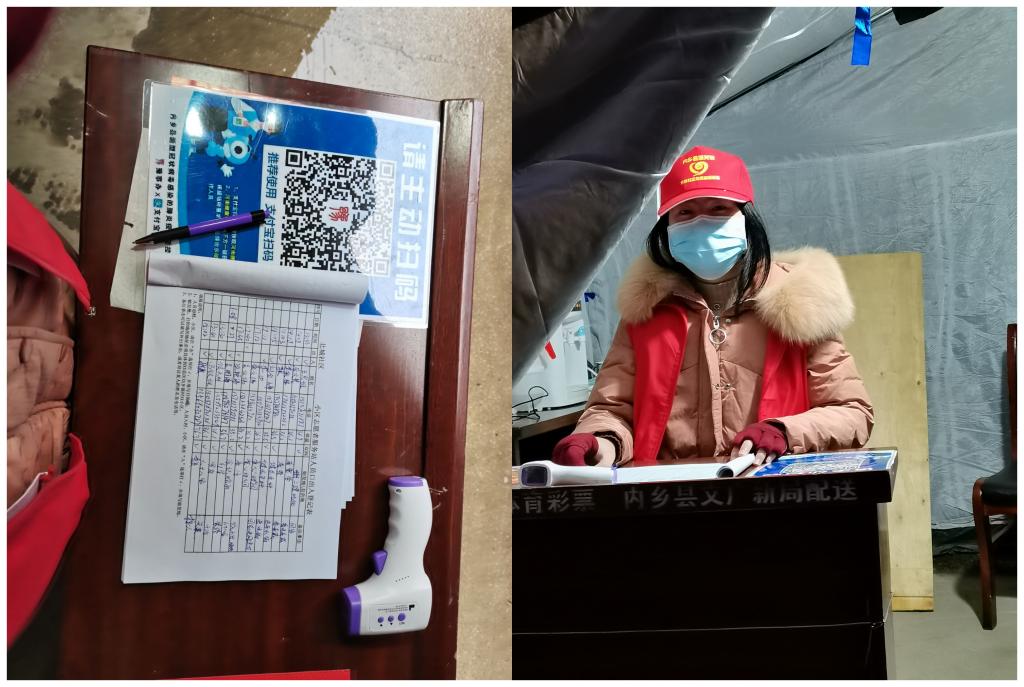 马梦博同学的家乡在南阳市内乡县,也是此次疫情防控区域。在自身健康和安全保障的前提下,马梦博同学积极参加疫情防控志愿服务。在社区工作人员的安排下,在卡点进行进出人员登记排查以及督促居民戴好口罩做好疫情防控工作,为家乡和人民作服务,同时她也体会到了疫情防控服务人员的辛苦,并相信在大家的努力下我们一定可以战胜疫情。